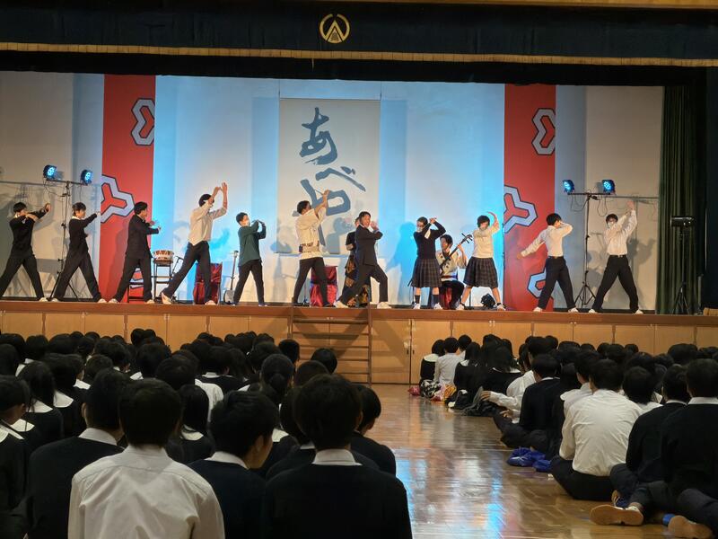 今年度は、「津軽三味線あべや」さん。ソーラン節では生徒参加コーナーもあり、会場全体が盛り上がりました。