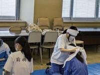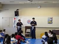 令和6年10月19日(土)、群馬県生涯学習センターで行われた専門部大会に1年生3名、2年生1名が参加しました。当日は日本赤十字社群馬県支部の職員の方から、傷の手当の仕方を三角巾を用いて行う方法を教えていただきました。当初は三角巾を八折にするのも苦戦しましたが、1時間もたつとすんなりとできるようになりました。頭部や腕の怪我の手当ての仕方などを練習することができました。